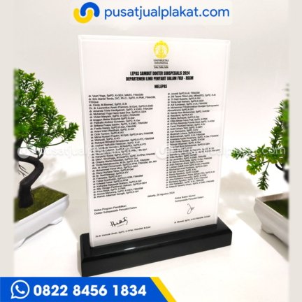 Material : Akrilik Finishing : UV Print Ayo Segera !!! Pesan Plakat Berkualitas dengan harga murah terbaru hanya di pusatjualplakat.com kualitas terbaik, pengerjaan cepat, dan profesional. Silahkan di pesan segera plakat custom yang anda inginkan. Tersedia juga plakat dengan aneka material dari fiberglass, akrilik, kayu, kuningan, Timah dll.