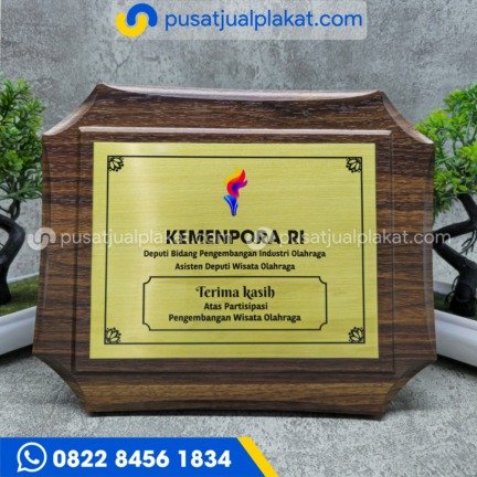 Tentu saja, acara formal di tingkat kementerian atau instansi negara selalu menuntut standar cinderamata yang sangat tinggi. Oleh karena itu, Plakat Kemenpora RI ini kami hadirkan sebagai representasi apresiasi resmi yang elegan dan berwibawa. Selain itu, desain klasik yang mengusung bentuk perisai ini sukses memancarkan kesan kokoh dan melindungi nilai-nilai sportivitas bangsa.