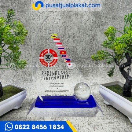 Ciptakan kenangan tak terlupakan untuk acara lintas negara Anda dengan plakat akrilik custom premium yang memadukan kejernihan sempurna dan warna yang menawan.