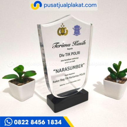 Material : Akrilik Bening dan Resin Bening Finishing : UV Print Ayo Segera !!! Pesan Plakat Berkualitas dengan harga murah terbaru hanya di pusatjualplakat.com kualitas terbaik, pengerjaan cepat, dan profesional. Silahkan di pesan segera plakat custom yang anda inginkan. Tersedia juga plakat dengan aneka material dari fiberglass, akrilik, kayu, kuningan, Timah dll.